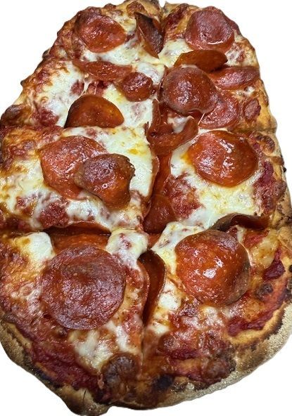 Introducing Pizza Romana - It features uneven rustic surface that is cooked straight on the brick. The crust is light and pillowy as well as airy. It is higher in protein, lower in gluten, and lower in calories as compared to traditional pizza dough. It is available in one size only, 12" oval shape. It is absolutely delicious - we all fell in love with it from the very first bite. And, we believe no one in the immediate area offers a Romana Crust. Try one with any of your favorite toppings or as one of our specialty pizzas!